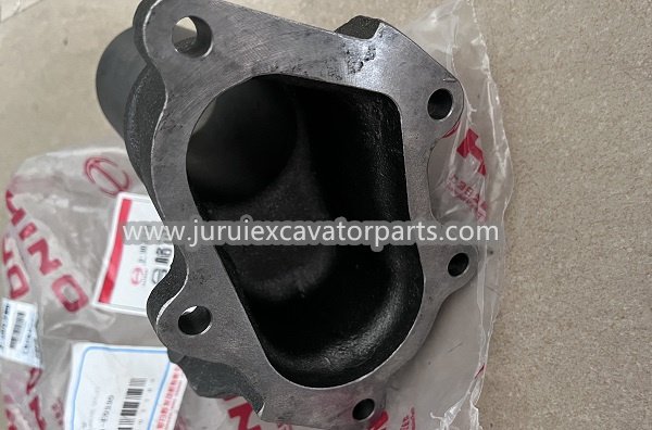 VH17291E0330 J05E turbo outlet elbow for Kobelco -8 series excavators. Direct OEM replacement, ensures efficient exhaust flow, prevents leaks, and protects turbocharger.